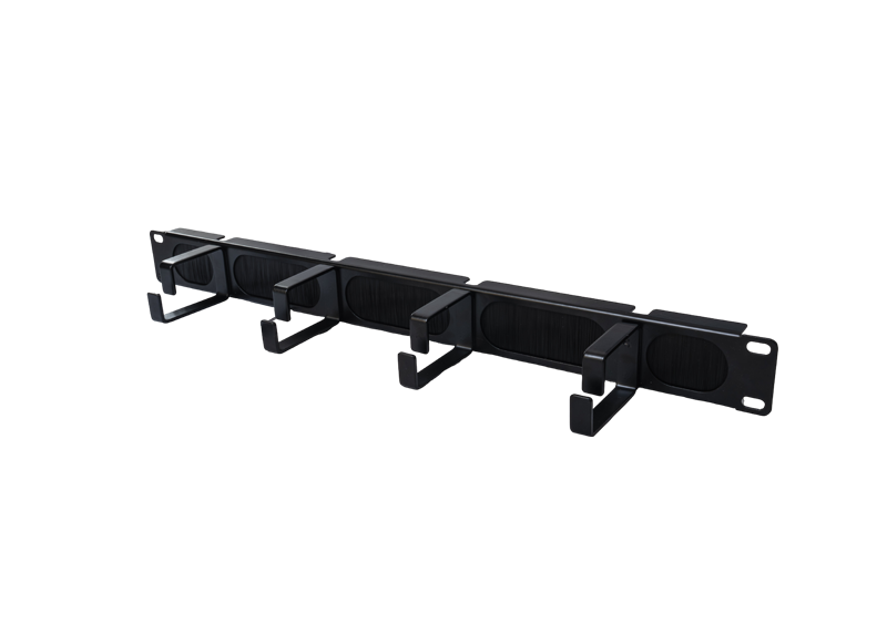 4 ring cable management bar with brush strip cable exit points for 19’’ racks and cabinets enables tidy cable management with minimised disruption of airflow.