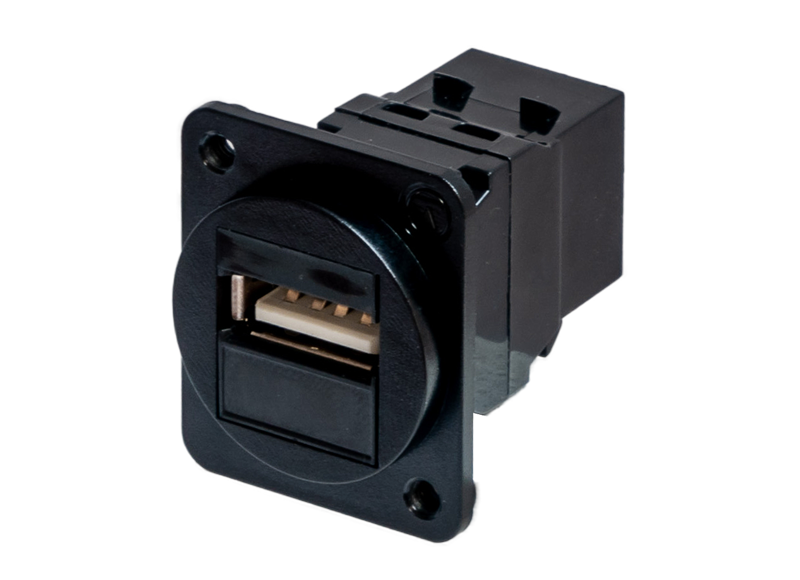 TUK’s D UNIVERSAL series of connectors offers a wide variety of audio, video and data connectors all available for use in standard ‘D Series’ XLR type cut-outs. Designed for rear mounting, our connectors have a pleasing flush appearance when mounted in suitable panels. All items in the range can be mounted quickly without need for any securing nuts, as our PATENTED 26 x 31mm mounting plates (made from black polycarbonate or nickel plated PC/ABS according to connector type) are pre-threaded for M3 screws. All connectors are made to relevant standards. Category 6 and 6A connectors are produced, for example, to FCC68 and to TIA/EIA 568B and have an insertion life of >750 mating cycles. All products are CE compliant (i.e including ROHS and REACH) TUK seeks continuously to expand the range to ensure comprehensive coverage of established and new voice, A/V and data cabling technologies.