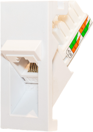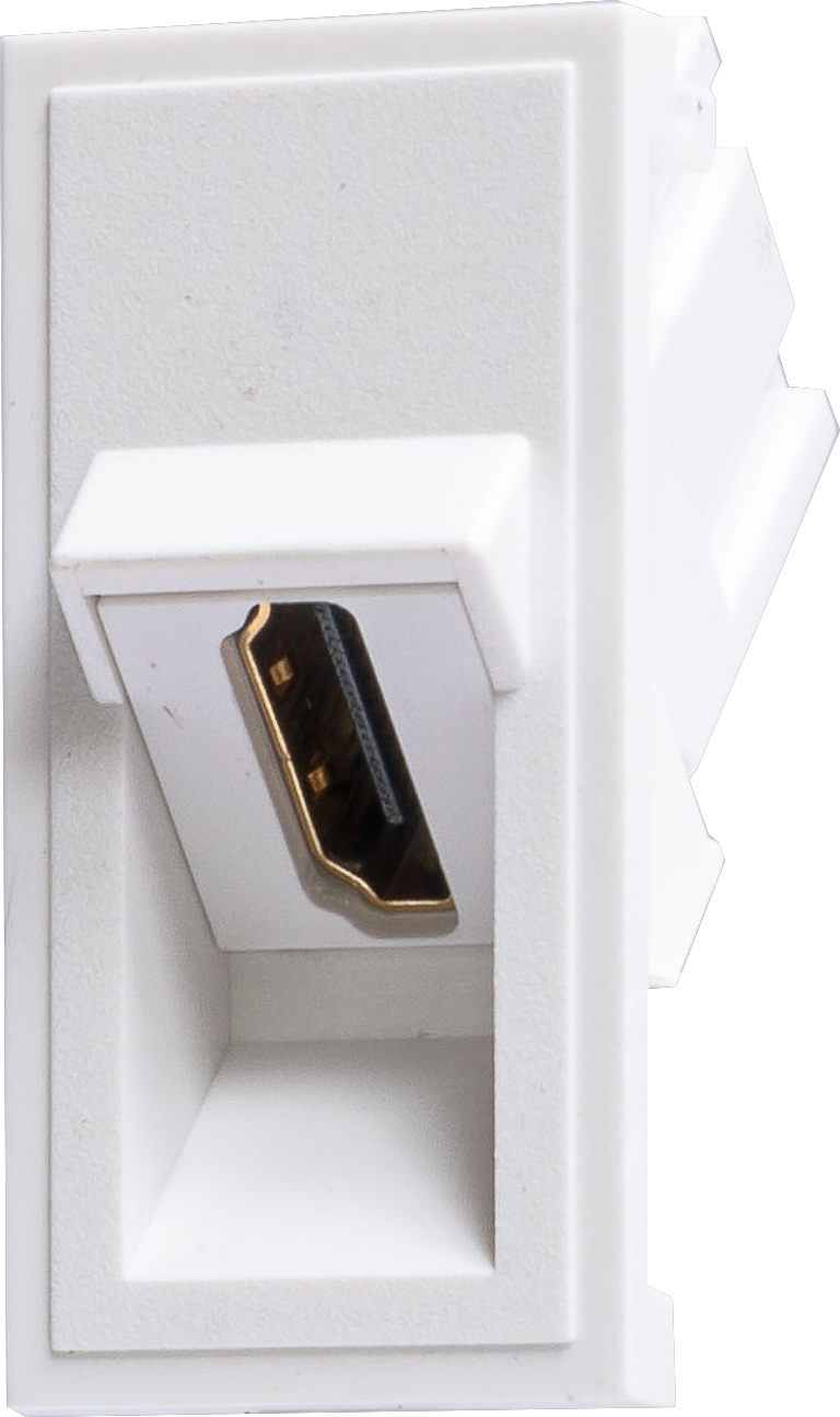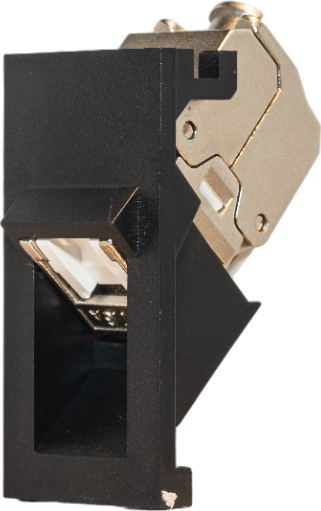 The angled faceplate adaptor is made of robust black or white polycarbonate. The design allows close access to the connector, maximising the connection with, for example, HDMI and USB connectors. The angle reduces the need for a shutter in faceplate installations and assists with bend radius issues.