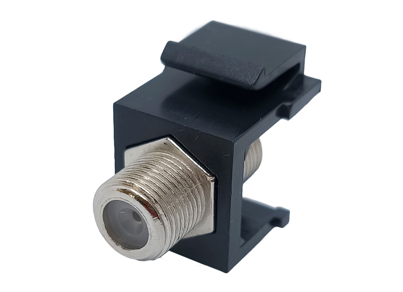 This module can be used to extend an F-connection. With its standardised dimensions, it can be used for easy snap-in mounting in e.g, a keystone patchpanel, face plate or suface-mount box.