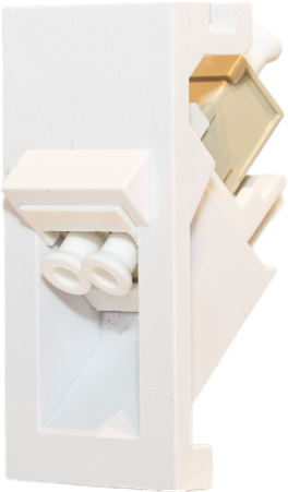 Our stylish angled fibre modules have been designed for use in standard faceplates which connect to industry standard trunking, wall box or floor box installations. Providing optimum fibre bend radius control, these multimode LC to LC duplex modules are suitable for use in FTTD or FTTP environments